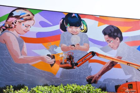 This mural-in-progress lies at the Fountain Plaza intersection down the sidewalk from Freiberg’s German Restaurant. The artist DAAS expresses “friendship, togetherness, memories of childhood, and love for the natural environment” in this unique piece. The image suggests that the children are planting flowers as a representation of “growing roots in the community in which they are raised,” and “no matter where they go later in life, they will always be together in spirit.”