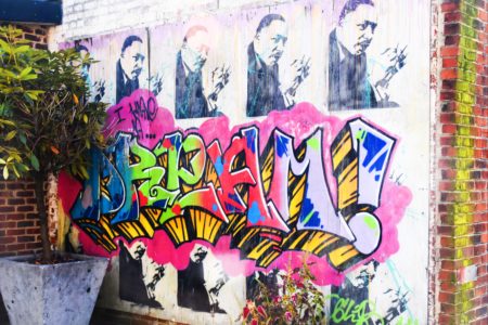Around the corner, you will find a hidden gem with a walk-up window and outdoor seating. Grab lunch at Taste Budz, and enjoy a sampling of hometown country cookin’ like fried chicken, macaroni and cheese, and green beans. Take a gander and snap a pic with the custom Martin Luther King Jr. Dream mural.