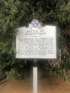Sullivan County holds significant Civil War memories – The Battle of Blountville (historic marker pictured above). On September 22, 1863, the courthouse and most of the town was burned as