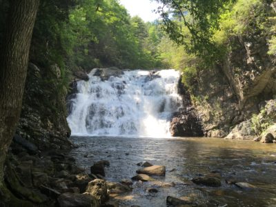 This 4.8 mile to and back hike takes you to Laurel Falls following an old railroad bed along the AT into the heart of the Laurel Fork Gorge on the Blueline Trail. Pass a sheer rock bluff, the first of many geological features, before meeting the Appalachian Trail. Laurel Falls drops 60 feet into a deep churning pool, and is popular with summertime swimmers.