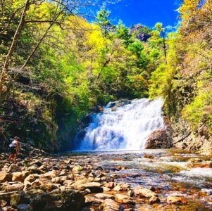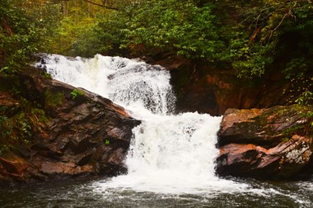 Prepare to be bewildered when visiting this gorgeous falls located in the Unaka Mountain Recreation Area. Starting out with two creek crossings, this short hike is not for the faint of heart. You will climb down steep terrain parallel to the falls crossing over wet roots and rock native to our Appalachian rainforest. The Mountain Laurel at Red Fork Falls will make you feel like you are living in a fairytale.