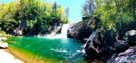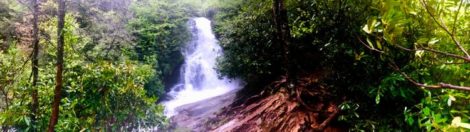 Dennis Cove Falls is a two-for-one deal. The trail twists and turns around the creek all the way up to two wonderful waterfall vistas. For an added bonus, hike the trail further to views from the top of the second falls and access to the mystic meadows of Frog Level.