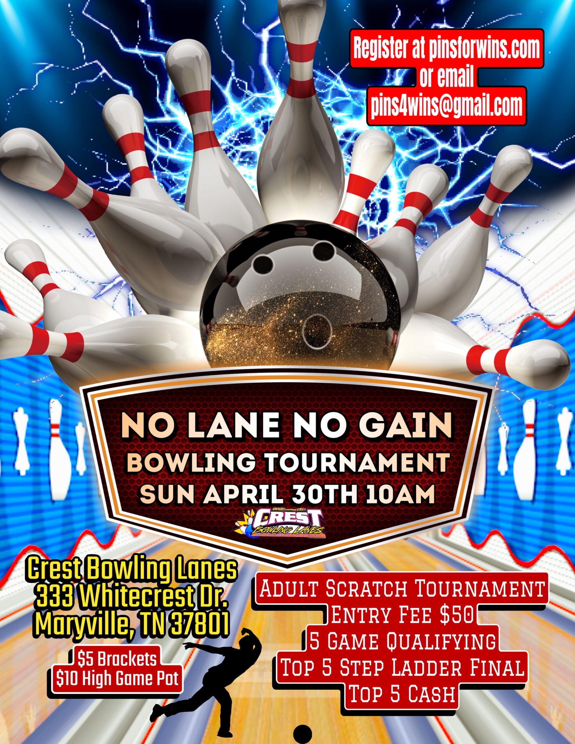 NO LANE NO GAIN TOURNAMENT PRESENTED BY PINS FOR WINS