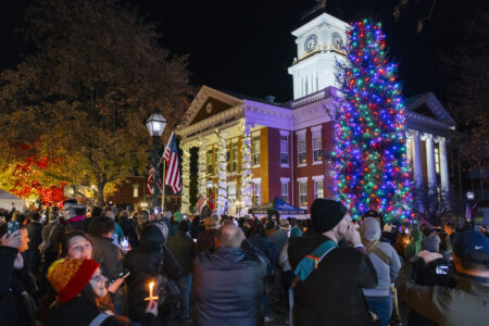 The evening features a welcome from local mayors, performances by David Crockett High School’s Madrigal Singers, a county-wide elementary school choir, and a special Christmas story by local performer Paul Harris. The moment the town goes dark, and the magnificent 60-foot Frasier Fir is lit—with every family holding a small, lit candle—is pure Main Street magic.
