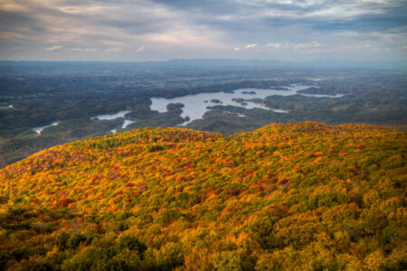 Located in the Southern Appalachian Mountains of east Tennessee, the Cherokee National Forest is divided into northern and southern sections by the Great Smoky Mountains National Park. The 650,000-acre forest is the largest tract of public land in Tennessee and adjoins other national forests in Virginia, North Carolina and Georgia. Spanning across Northeast Tennessee, there are varying levels of hiking trails. Don’t want to get out of the car? Take the scenic roadways along the countryside to witness fall colors from the comfort of your car.