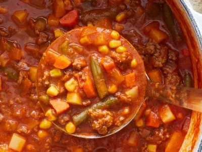 Cover soup bones or equivalent with 4 inches of water. Add bay leaf, a shake of Mrs. Dash, and garlic. Bring to a boil, then simmer for two hours. If using soup bones, remove them. Add diced onion, white and sweet potatoes, celery, pepper, carrots, cabbage, green beans, and cabbage. Bring to a boil, then simmer for 30 to 45 minutes. Add tomatoes, V-8, frozen vegetables, and a splash of Worcestershire sauce. Cook for 30 minutes. Remove the bay leaf… and enjoy!