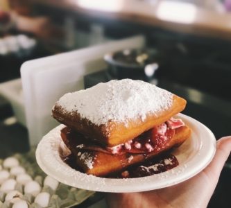 Beignets is a popular food in New Orleans that is tied to Mardi Gras. Since its creation, it has been a tradition for the residents, but also a beloved treat in other parts of the world. But, what is a beignet? The word beignet is French for “fritter” or “doughnut.” The New Orleans style beignet includes deep fried dough and is topped with powdered sugar.