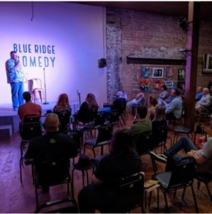 There is one thing that came from the pandemic that is a welcome new addition to our area: Blue Ridge Comedy Club. Owner Shawn Carter, a professional comedian and producer from Boston, ended up in Bristol during the pandemic with his wife, Sarah Morgan. Shawn saw that there was an absence of a place here where comics could go to try out material, or for patrons of comedy to go watch a good show on a regular basis.