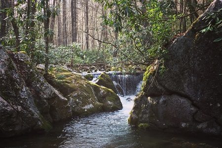 The park is surrounded on three sides by the Cherokee National Forest. The steep, rugged terrain is drained by numerous cool mountain streams including its namesake, Rocky Fork Creek, which flows through the park.