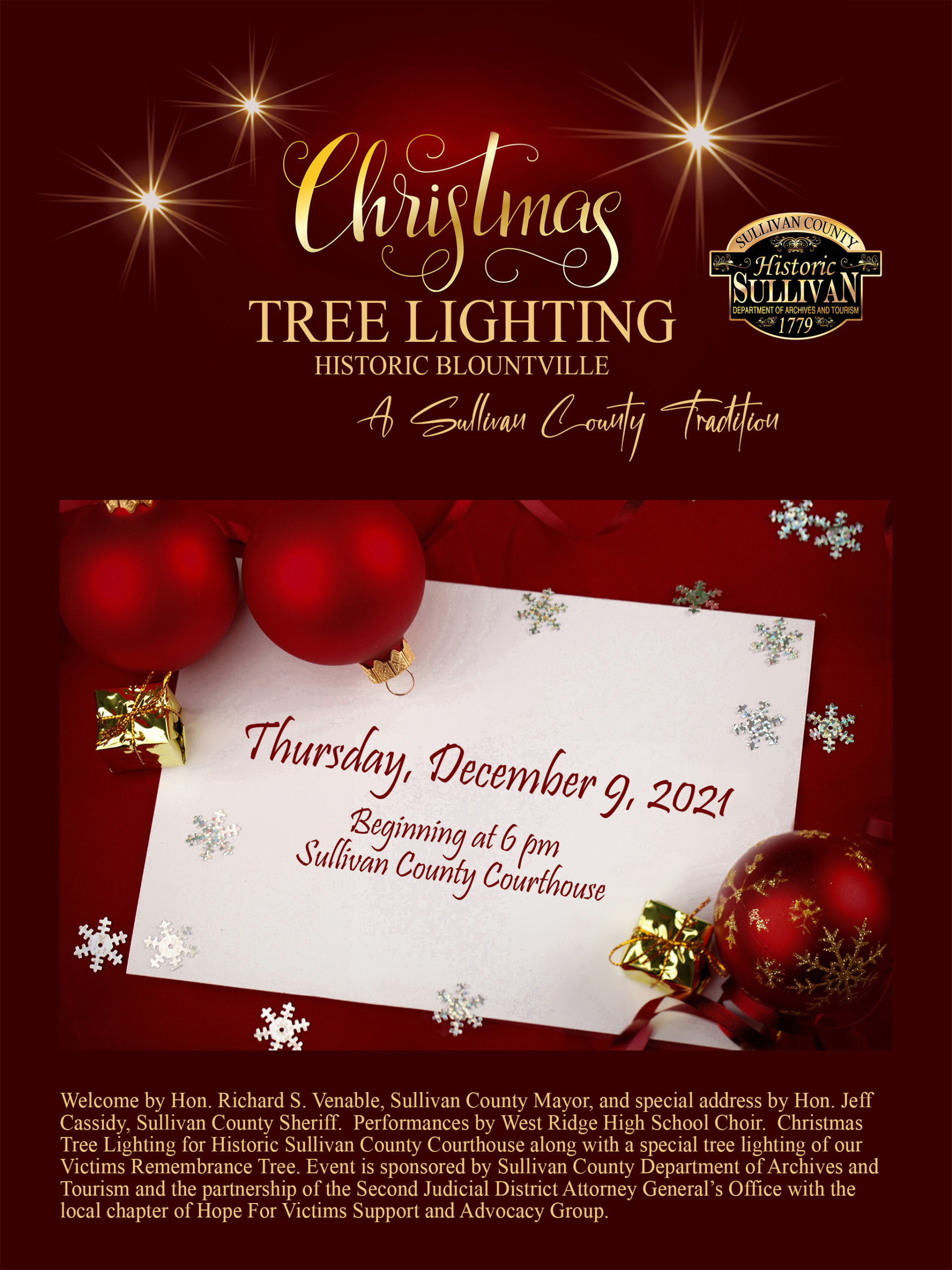 Historic Blountville 3397 TN-126, Blountville, TN, United StatesWant to ring in the Christmas Season with family and friends? Do you have a special someone you would like to remember at Christmas? How about an old-fashioned Christmas Tree Lighting right here in the heart of Sullivan County and join in on some old-time Christmas caroling around the tree? Historic Blountville is the place