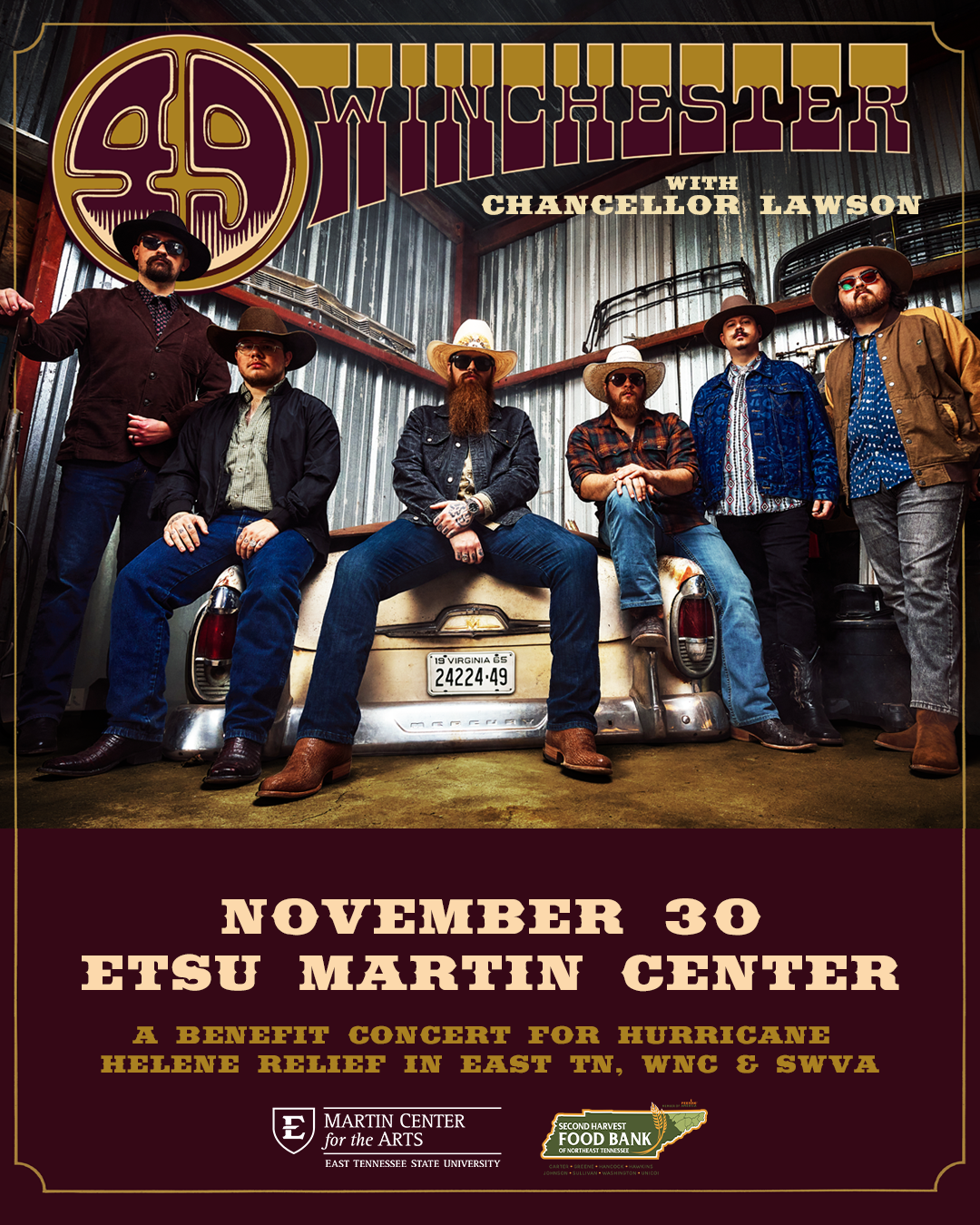 Martin Center for the Arts 1320 W. State of Franklin, Johnson City, TN, United StatesThe ETSU Martin Center for the Arts is proud to present 49 Winchester, a special benefit concert to support Hurricane Helene relief efforts in East Tennessee, Western North Carolina, and Southwest Virginia through Second Harvest Food Bank of Northeast Tennessee. All proceeds from ticket sales will go directly to Second Harvest Food Bank of Northeast